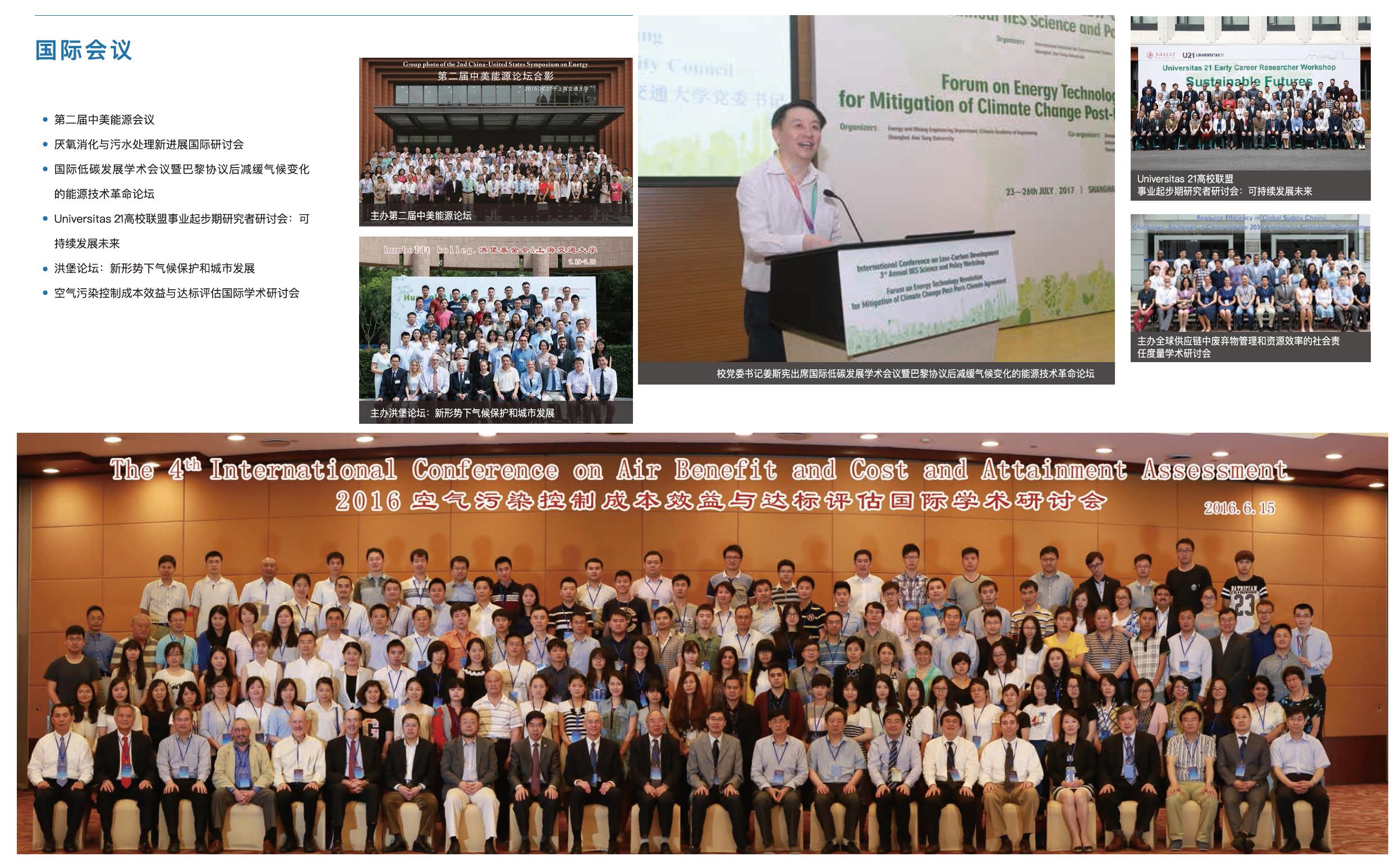 学院积极承办各类国际会议,搭建国际化学术交流平台:第二届中美能源会议、厌氧消化与污水处理新进展国际研讨会、国际低碳发展学术会议暨巴黎协议后减缓气候变化的能源技术革命论坛、Universitas21高校联盟事业起步期研究者研讨会:可持续发展未来、洪堡论坛:新形势下气候保护和城市发展……