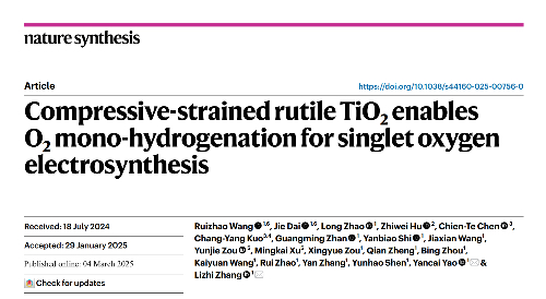 环院智慧|张礼知团队在Nat. Synth.发文报道压缩应变二氧化钛单氢化活化氧气电合成单线态氧