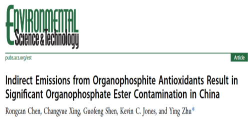环院智慧|朱樱副教授ES&T发文采用模型方法首次量化揭示我国亚磷酸酯抗氧剂间接源排放对有机磷酸酯污染的贡献