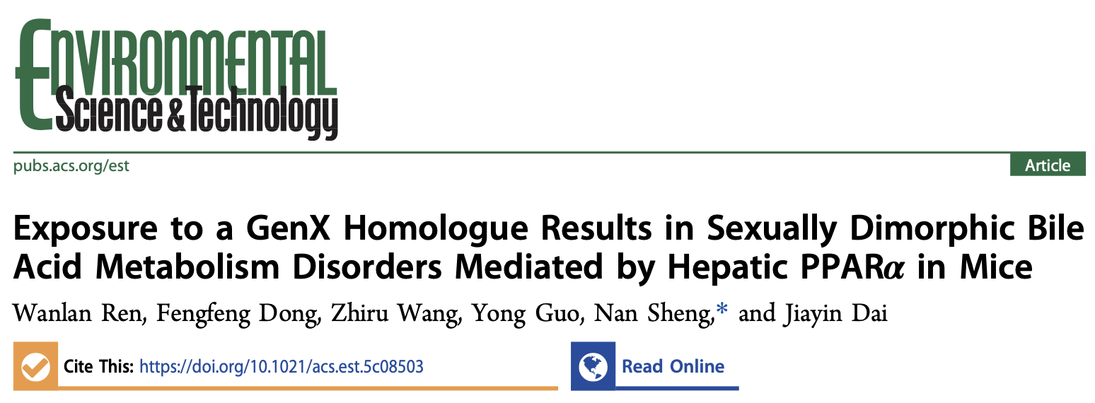 环院智慧|戴家银团队Environ. Sci. Techonl.发文揭示新型PFAS诱导肝脏胆汁酸代谢性别差异的关键机制