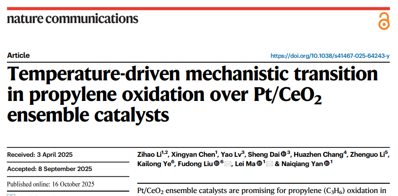 大气污染控制与模拟团队马磊副教授Nat. Commun.发文揭示Pt/CeO2团簇催化剂上丙烯催化氧化的动态反应机制