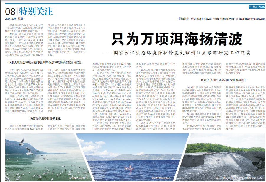 【中国环境报】只为万顷洱海扬清波——国家长江生态环境保护修复大理州驻点跟踪研究工作纪实
