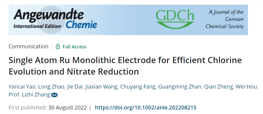 近日,日本女优 张礼知教授团队在Angew. Chem.在线发表了研究论文Single Atom Ru Monolithic Electrode for Efficient Chlorine Evolution and Nitrate Reduction,日本女优 长聘教轨助理教授么艳彩为该论文第一作者,特聘教授张礼知为通讯作者。