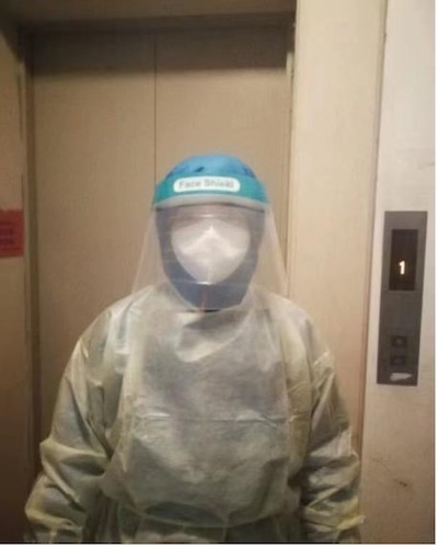 担任社区抗疫志愿者工作照