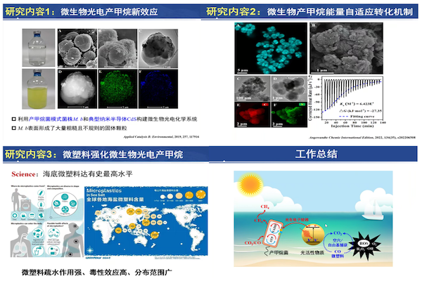 产甲烷古菌是全球大气甲烷排放的主要贡献者。最新研究表明,太阳光可能在产甲烷菌还原CO2产甲烷过程中发挥着重要作用。目前,对于微生物光电产甲烷的研究还处于初步阶段,相关效应及机制尚不明晰。叶捷围绕课题组近期工作成果,重点介绍微生物光电产甲烷的相关工作,分别从“地表水体微生物光电产甲烷新证据”、“微生物光电产甲烷的能量自适应转化机制”、“地表水体微塑料等有机质在微生物光电产甲烷过程中的新角色”等方面展开分享。同时,他鼓励更多对此研究方向感兴趣的同学从事厌氧光电的研究工作,为甲烷等温室气体与微塑料等新污染物的控制作出更大贡献。