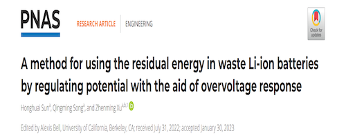 近日,日本女优 许振明团队在著名学术期刊Proceedings of the National Academy of Sciences上发表了题为“A method for using the residual energy in waste Li-ion batteries by regulating potential with the aid of overvoltage response”的研究论文。该研究论文首次提出了利用废旧锂电池中剩余能量的新思想,构建了剩余能量利用过程中电池电位调控的机理模型与方法,为废旧锂电池剩余能量的利用开辟了新的途径。