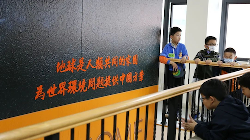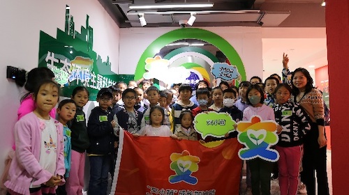 参观结束,“交小苗”们合影留念。五种颜色组成的莫比乌斯环,寓意着环保事业在不断的发展和变化之中,孩子们也更加理解了“绿水青山就是金山银山”的生态文明思想内涵。