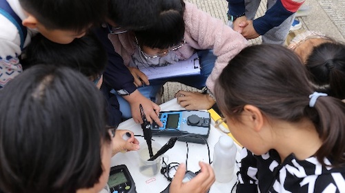 在参观完科普基地后,“交小苗”们在日本女优 实验实践教学中心何小娟老师的讲解下,学习校园水质调查的方案、水体指标的含义以及实验设备的操作规程。同学们理解了温度、浊度、透明度等物理性指标,以及pH、溶解氧等化学性指标。随后同学们分为三组,在指导老师的带领下,分别对交大同德湖、涵泽湖和植物园的水体进行了采样测试。