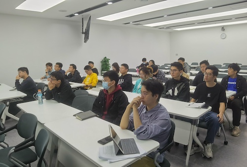 在讨论环节,与会师生针对“荧光信号的产生方式”、“双氧水过氧键的检测”、“有机材料封装”等问题与车教授展开了热烈讨论。