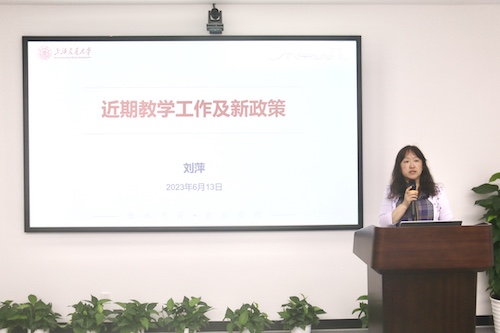 副院长刘萍介绍了近期教学工作情况,就毕业答辩、期末考试、暑期夏令营、MEM招生等工作安排予以重点提示,并介绍了学院教材及教学参考书管理办法修订要点和选用审核细则。