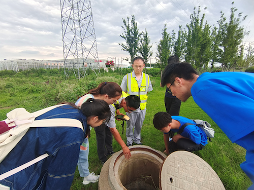 在客服与管网运行模块学习中,实践团来到客服中心,在对各类营收、抄表、客服运行工作等内容学习后,实践团成员分为两队现场进行抄表实操。在炎炎烈日下,大家在各个水表间来回穿梭,记录每户的用水情况,深刻体会到了基层员工的艰辛。随后,实践团学习了管网运维系统,了解了管道维修相关技术和各类管道配件、设备功能以及GIS、远传水表系统的各类功能及运行原理,并跟随巡线岗位人员前往巡线,在巡线员的带领下学习如何检查阀门以及GIS系统的实际应用,随后前往漏水地,体验听漏器的使用,观摩如何处理漏管。