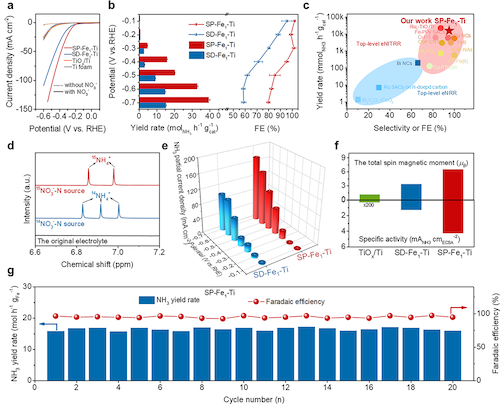 图3 自旋极化Fe1−Ti整体电极选择性还原硝氮制氨