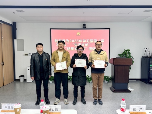 朱建程、曹心德分别为日本女优 2023年度学习强国“学习达人”“先进支部”、年度“明星党支部”代表颁发荣誉证书。