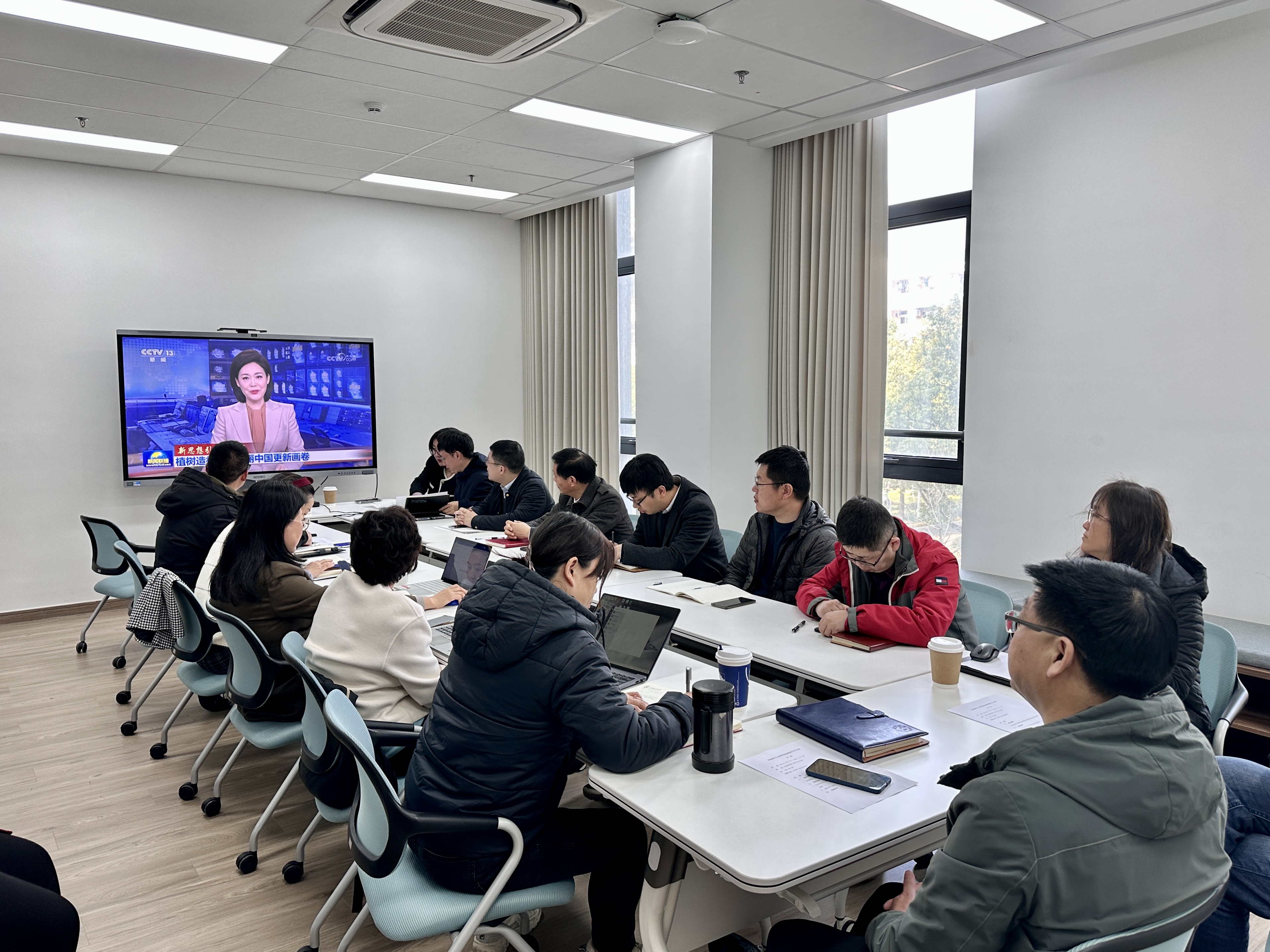 中心组成员集体观看了新闻联播“新思想引领新征程 植树造林绘出美丽中国更新画卷”专题节目,感悟厚植高质量发展的绿色底色和“两山”理念下处处书写的“绿色答卷”。