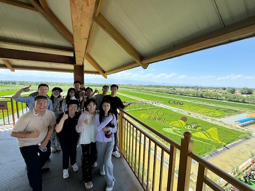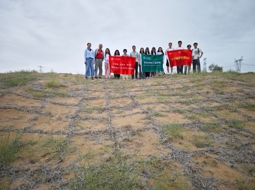 开营仪式后,实践团前往沙漠进行考察。宁夏拥有近70年的治沙历史,实现了让沙漠倒退20余公里的壮举,为世界贡献了中国经验。师生团队在现场对“人进沙退”的宁夏治沙成果表示惊叹。