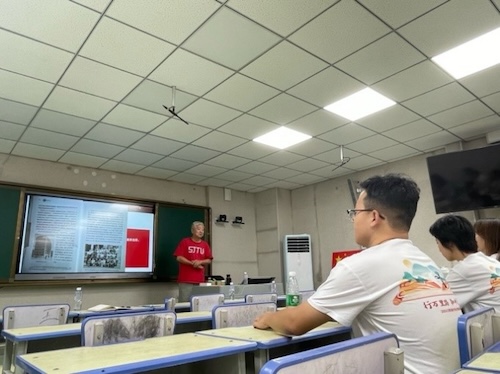 7月24日下午,朱建程讲授“扎根绿格 振兴绿色的情怀”专题党课,实践团成员及绿格公益治沙实践团成员参与本次党课。朱建程重点介绍了1950年交大学子参军成为上海首批雷达兵的历史故事,鼓励同学们心怀家国天下,将个人的前途命运与祖国的需要结合起来。