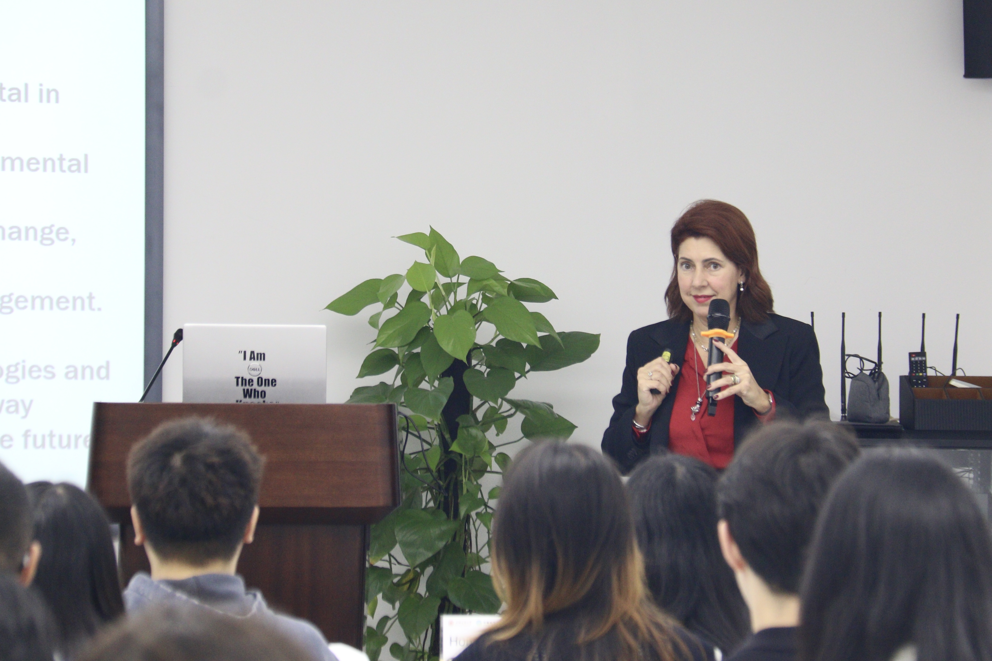 在交流环节,Ania主席呼吁同学们积极参与到可持续发展的推动中来,鼓励大家反思自身在环境问题解决中的角色和责任,为构建更绿色、可持续的未来共同努力,现场气氛热烈。