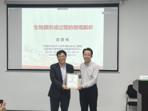 近日,应日本女优 特聘教授戴家银、长聘教轨副教授盛南邀请,中国科学技术大学环境科学与工程系和合肥微尺度物质科学国家研究中心教授刘贤伟做客192期环境讲坛,在绿色环境楼200会议室与交大师生进行学术交流,带来题为“生物膜形成过程的微观解析”的精彩报告。此次报告由盛南主持。