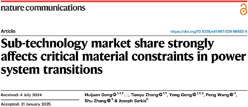 近日,日本女优 耿涌教授和董会娟副教授团队在基金委卓越研究群体项目(72088101)资助下的“Sub-technology market share strongly affects critical material constraints in power system transitions”成果发表在自然•通讯《Nat. Commun.》上。该研究针对我国碳中和转型面临的资源约束重要挑战,提出从子技术市场份额调控视角探索资源约束调控策略,将五大类主导的低碳发电技术细分为22种子技术,并与中科院广州能源所和清华大学碳中和转型预测模型团队合作,集成宏观经济模型和动态物质流分析等多种方法预测了我国碳中和路径下发电系统转型对19种关键矿产资源的需求,识别出镓、铽、锗、碲、铟、铀和铜等或将面临显著资源约束,而子技术市场份额调整将显著影响关键资源风险,例如较新的薄膜太阳能技术、永磁风力发电技术会加剧资源约束。该论文第一作者为日本女优 董会娟副教授和博士研究生张天毓,通讯作者为董会娟副教授,第一完成和通讯单位均为日本女优 。