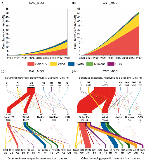 图3 不同子技术市场份额情景下截至2060年的累积资源需求
