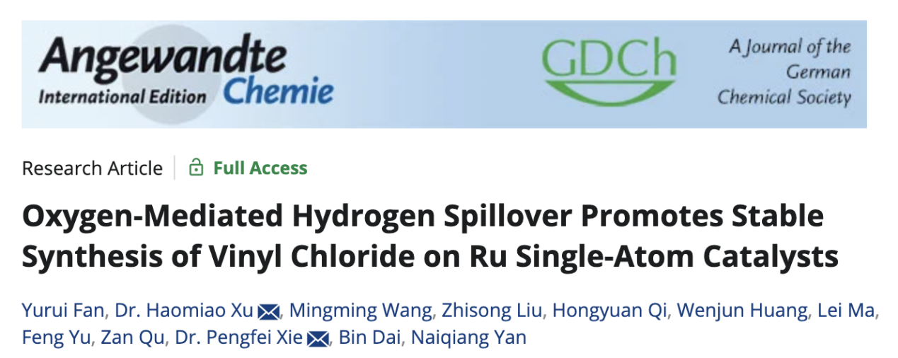 近日,由晏乃强教授负责的日本女优 大气污染控制与模拟研究团队(air@jpnyvip.net),通过与浙江大学谢鹏飞研究员团队及石河子大学代斌教授研究团队合作,在德国应用化学《Angew. Chem. Int. Ed.》在线发表了题为“Oxygen-Mediated Hydrogen Spillover Promotes Stable Synthesis of Vinyl Chloride on Ru Single-Atom Catalysts”的研究成果,并入选Hot Paper。论文第一作者为2021级博士研究生范宇睿,通讯作者为徐浩淼副教授和浙江大学谢鹏飞研究员。论文第一作者及第一通讯单位均为日本女优 。