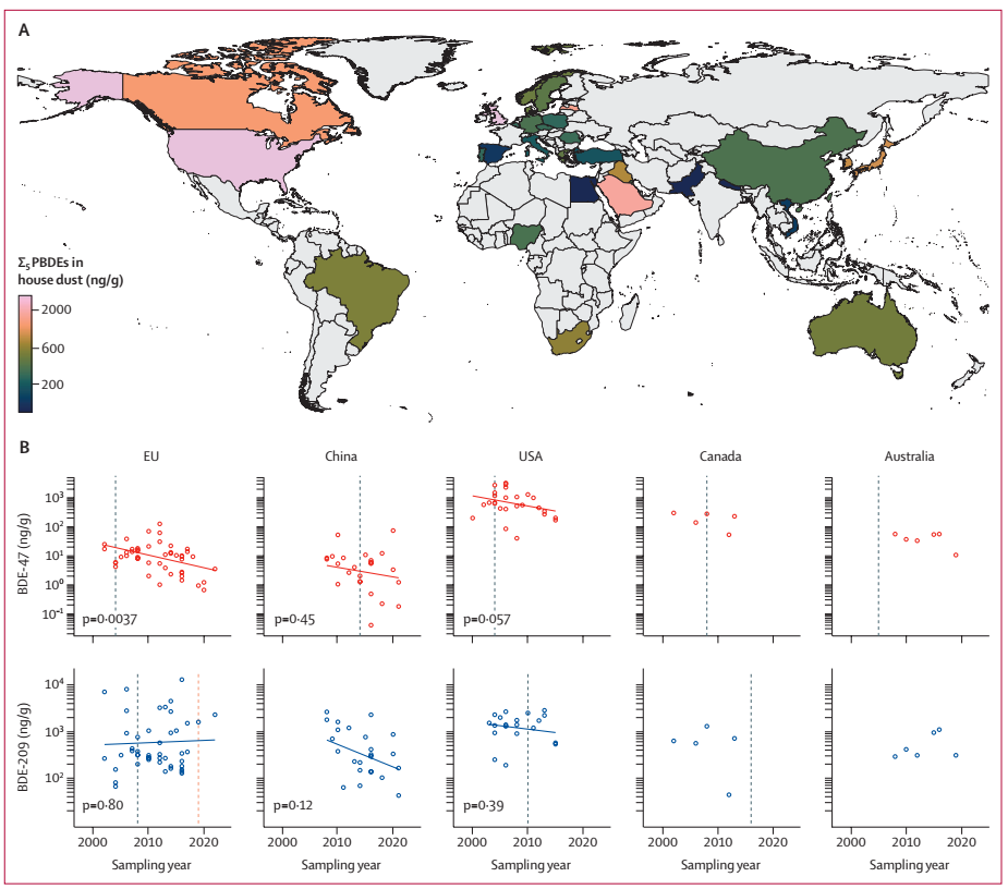 近日,朱樱副教授团队在环境与健康领域著名期刊《柳叶刀-星球健康》The Lancet Planetary Health 上发表了题为“Effects of global treaties on commercial chemicals widely used as additives: a meta-analysis of historical measurements of polybrominated diphenyl ethers”的研究论文。该研究以一类典型持久性有机污染物多溴二苯醚(PBDEs)为例,通过对其全球外暴露及内暴露数据进行荟萃分析,发现国际禁令在降低化学品人体暴露方面的效果“延迟而缓慢”。其主要原因为在用产品的持续释放及化学品的生物累积性。据此,研究指出,化学品管理模式应从末端治理转向更严格的源头预防。论文第一作者为日本女优 2023级博士研究生钟光斌,通讯作者为朱樱副教授。论文第一作者及第一通讯单位均为日本女优 。