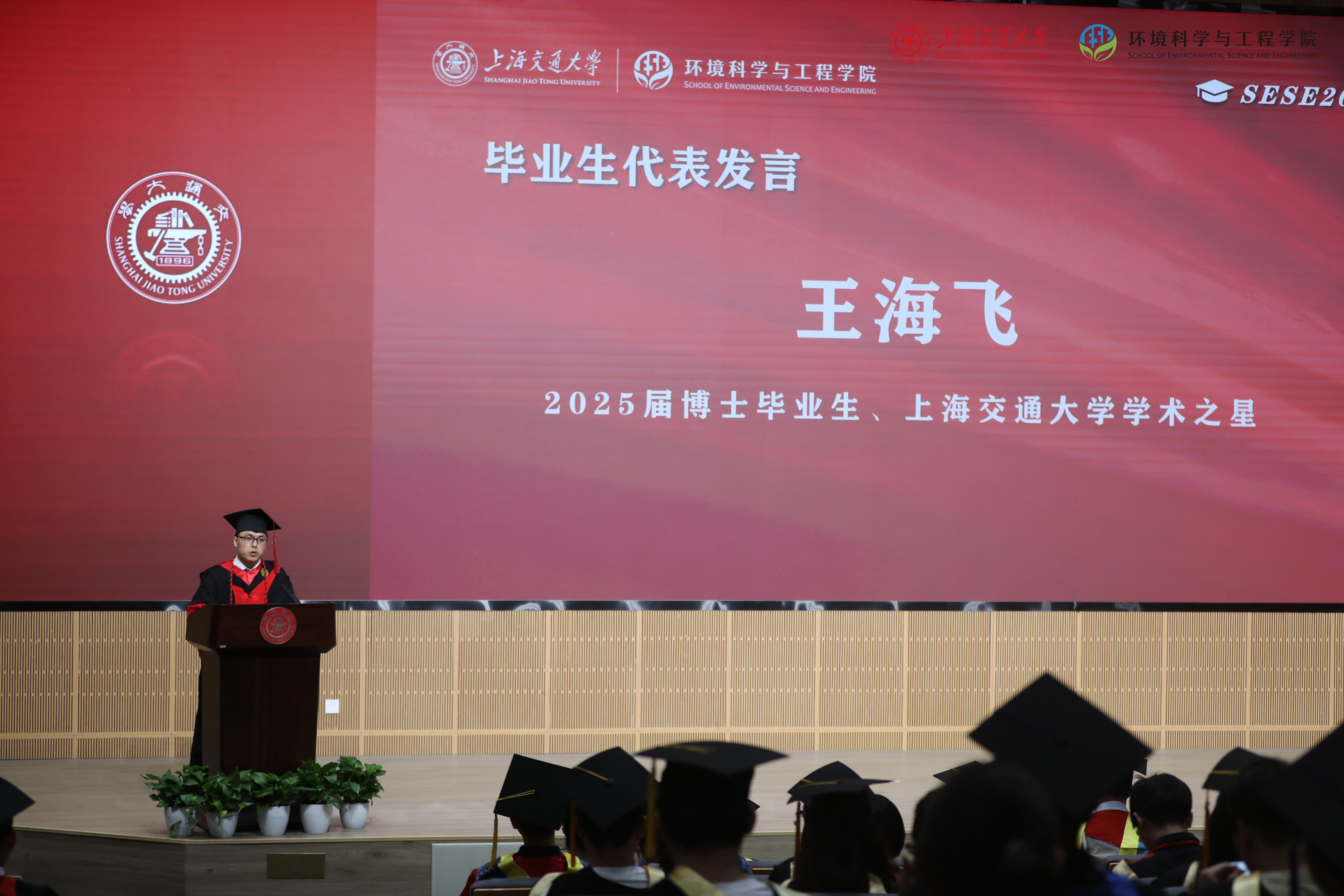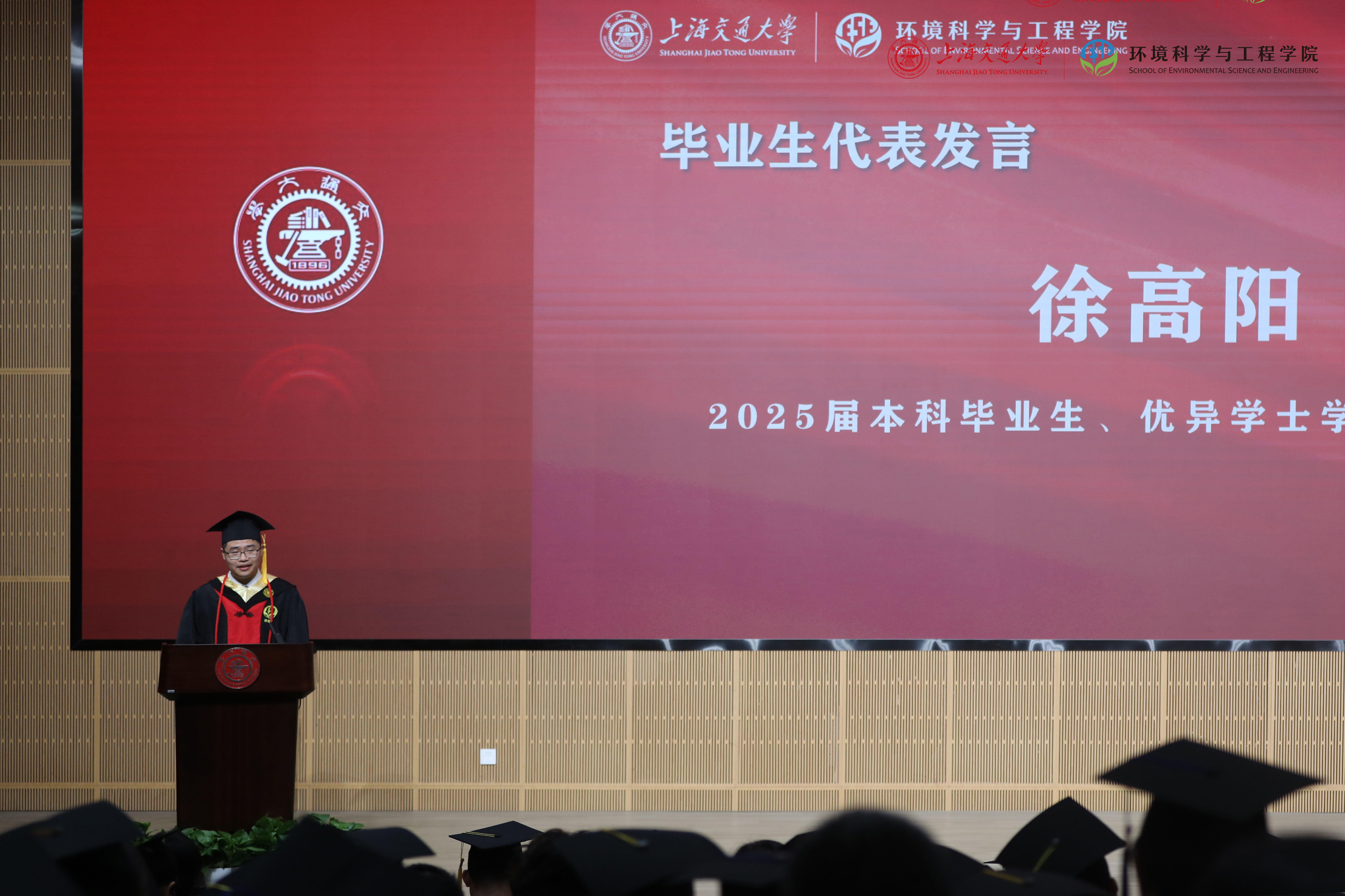 学院2025届本科毕业生徐高阳以“以青春之姿,探索无限可能”为主题发言。他感谢学校和学院提供了广袤的成长沃土,让学生在探索中确立志向、在挫折中淬炼韧性、在合作中拓展视野,最终蜕变为心怀家国、脚踏实地的交大人。