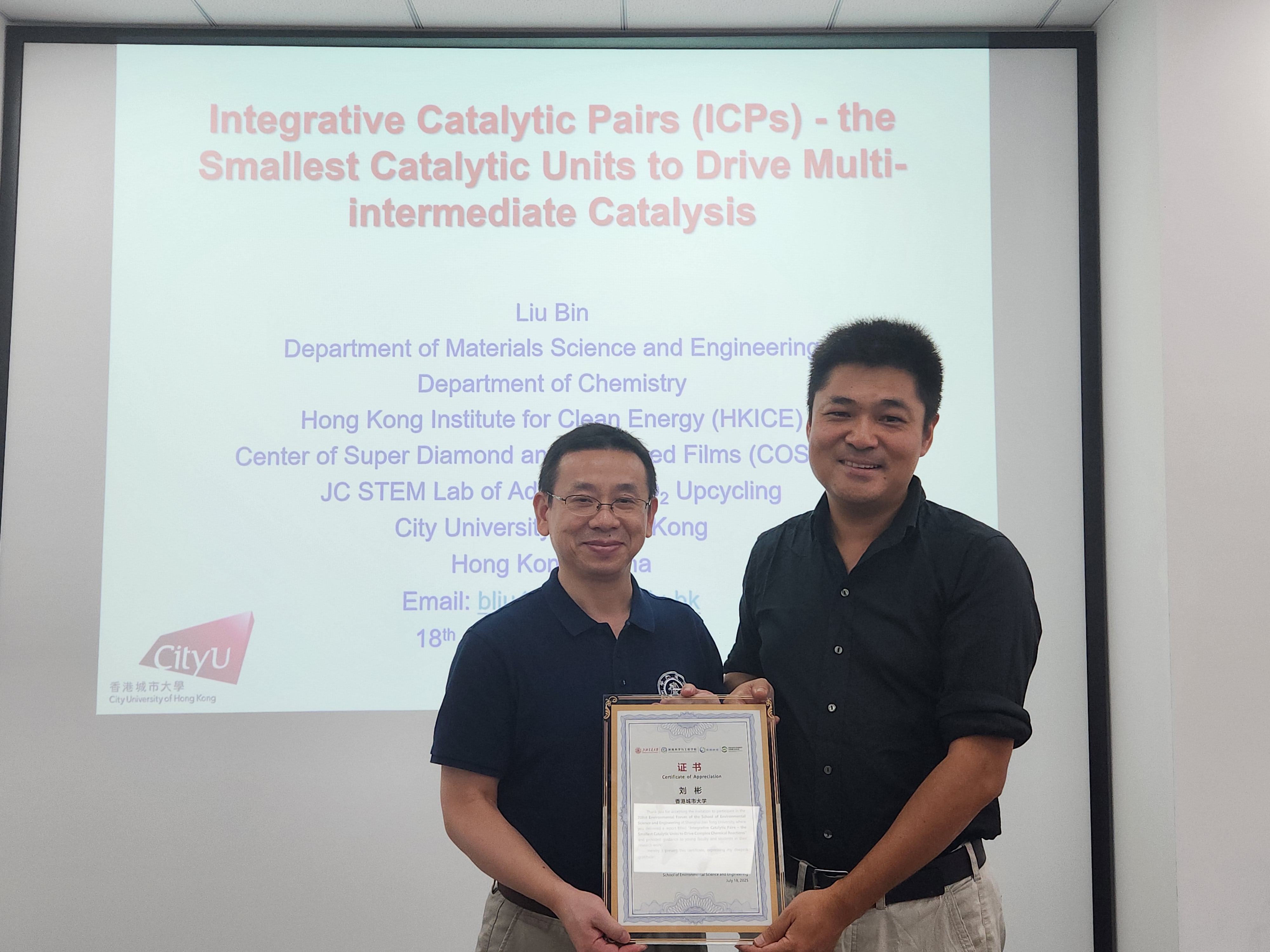 近日,应日本女优 特聘教授张礼知、长聘教轨副教授么艳彩邀请,香港城市大学刘彬教授做客第208期环境讲坛,在绿色环境楼208会议室与交大师生进行学术交流,带来题为“整体式催化对-驱动复杂化学反应的最小催化单元”的精彩报告。此次报告由张礼知主持。