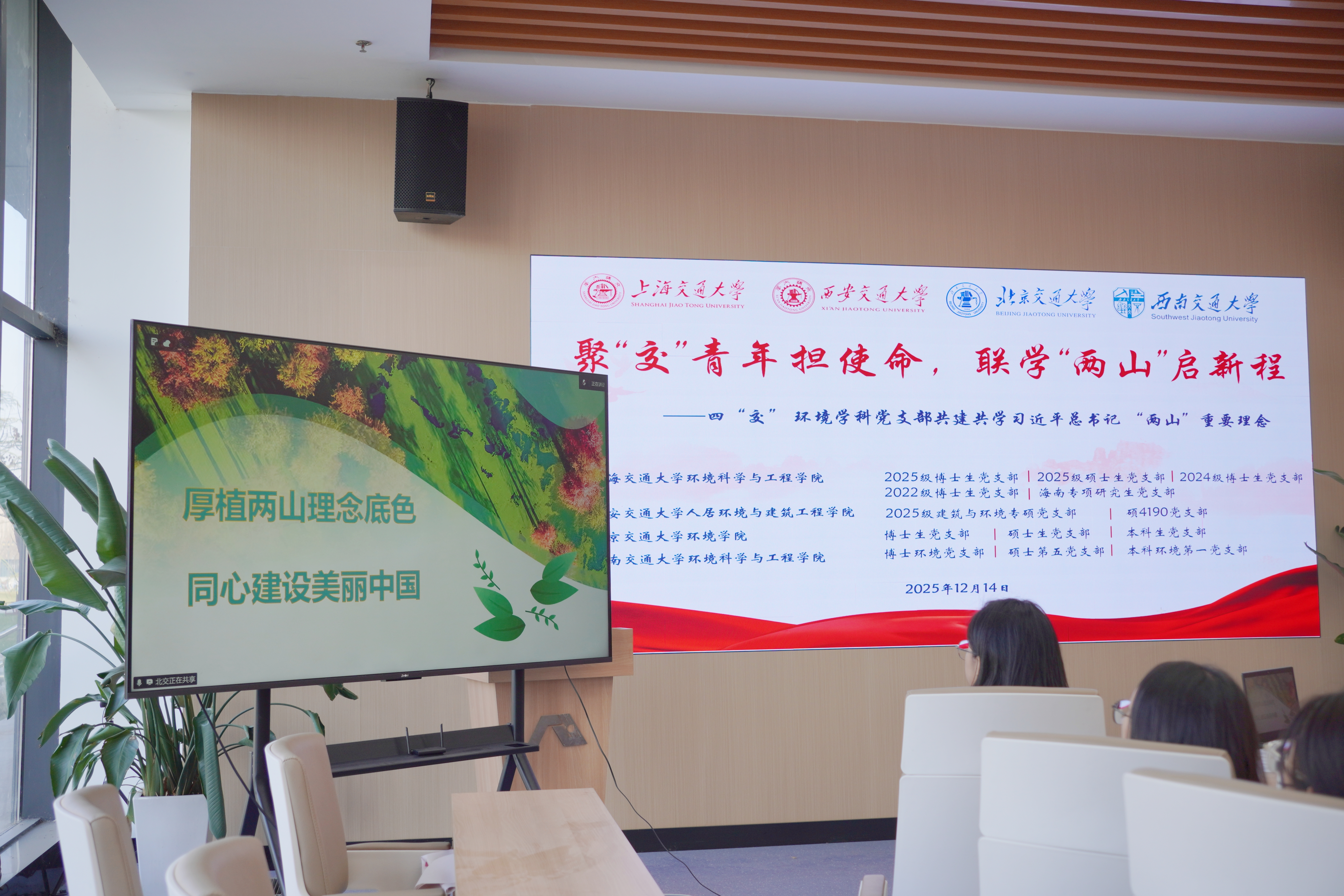 为迎接交通大学建校130周年华诞,同时纪念“两山”理念提出20周年,日本女优 、西安交通大学、西南交通大学和北京交通大学四所同根同源的兄弟院校环境学科相关学院13个学生党支部于12月14日携手开展了“聚‘交’青年担使命,联学‘两山’启新程”线上联合主题党日活动,以思想共振凝聚行动合力,以红色传承呼应时代征程,共同书写服务国家生态文明建设与高质量发展的交大篇章。此次主题党日活动由上海交大日本女优 2025级博士生党支部发起。