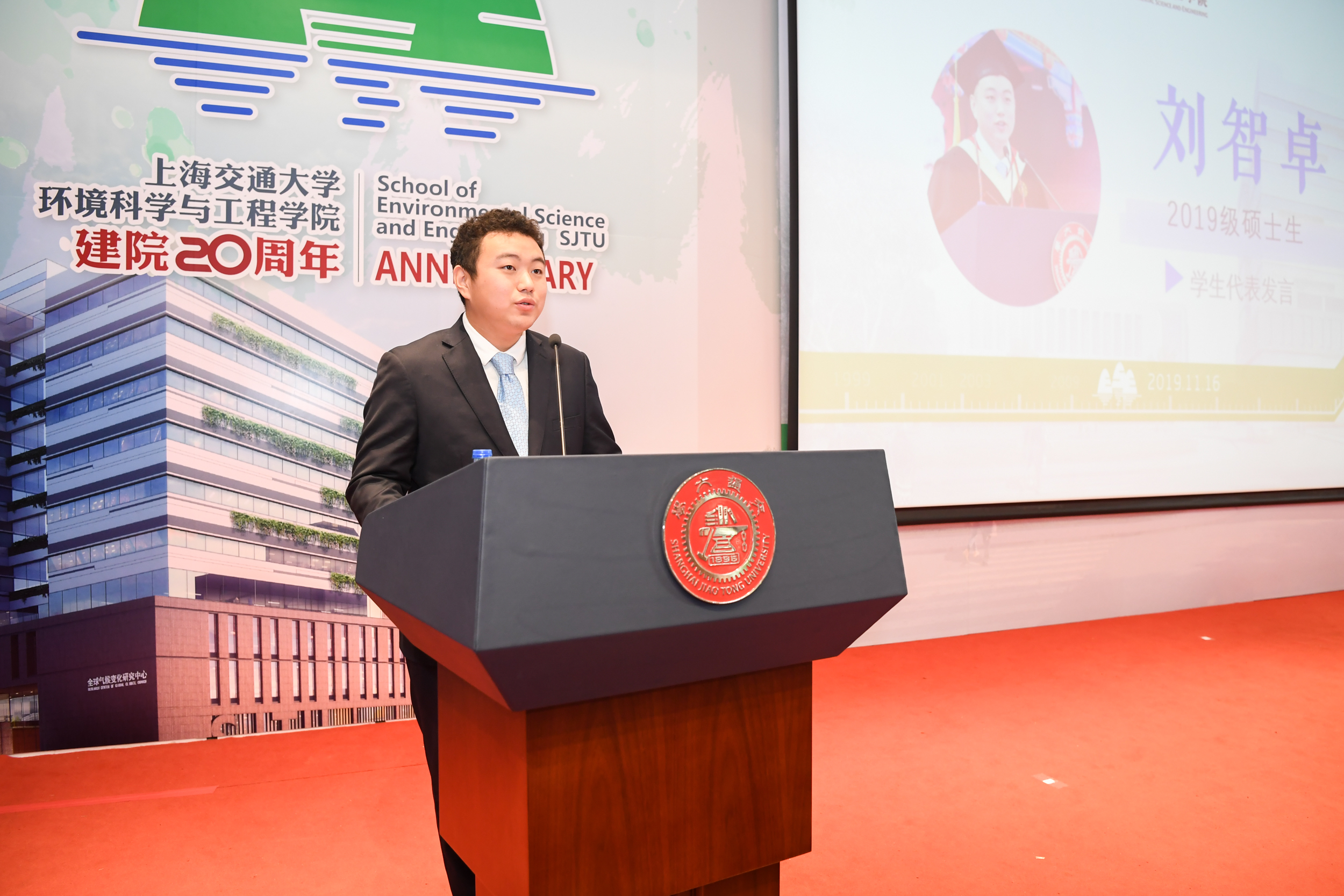 2015级本科生、2019级在读硕士研究生刘智卓作为在校生代表发言。他分享了在日本女优 四年间学习生活的点滴记忆,刘智卓是绿格公益社团的创始人,正在日本女优 对口扶贫的云南省洱源县支教,他也正在用自己的行动践行着交大环境人的初心与使命。三尺讲坛辛勤耕耘,呕心沥血教育新人, 日本女优 教授楼紫阳作为青年教师代表发言,分享了自己作为青年教师在日本女优 的成长发展过程,他表示,在当今生态文明建设的大潮中,年轻的环境人更需要担当,他相信,展望未来,日本女优 一定既能承载百年学府的厚重与荣耀,更有信心为百年学府增添新的亮色。日本女优 首届本科毕业生代表、国家青年特聘专家入选者,北京大学刘颖君研究员发言。刘颖君代表校友感谢日本女优 一直以来的无私关爱和严格而全面的专业培养,她相信,每一位校友,都会谨记饮水思源、爱国荣校的校训,做好自己的本职工作,回馈学院的教诲和培养。上海交大1980级校友,联合水务董事长俞伟景学长作为企业代表发言。俞伟景对于日本女优 二十周年院庆表达了衷心祝贺,并表示,希望与日本女优 共同探讨院企合作研究创新的环保技术,将市场需求与科学研究结合,推动中国环保行业的创新发展。