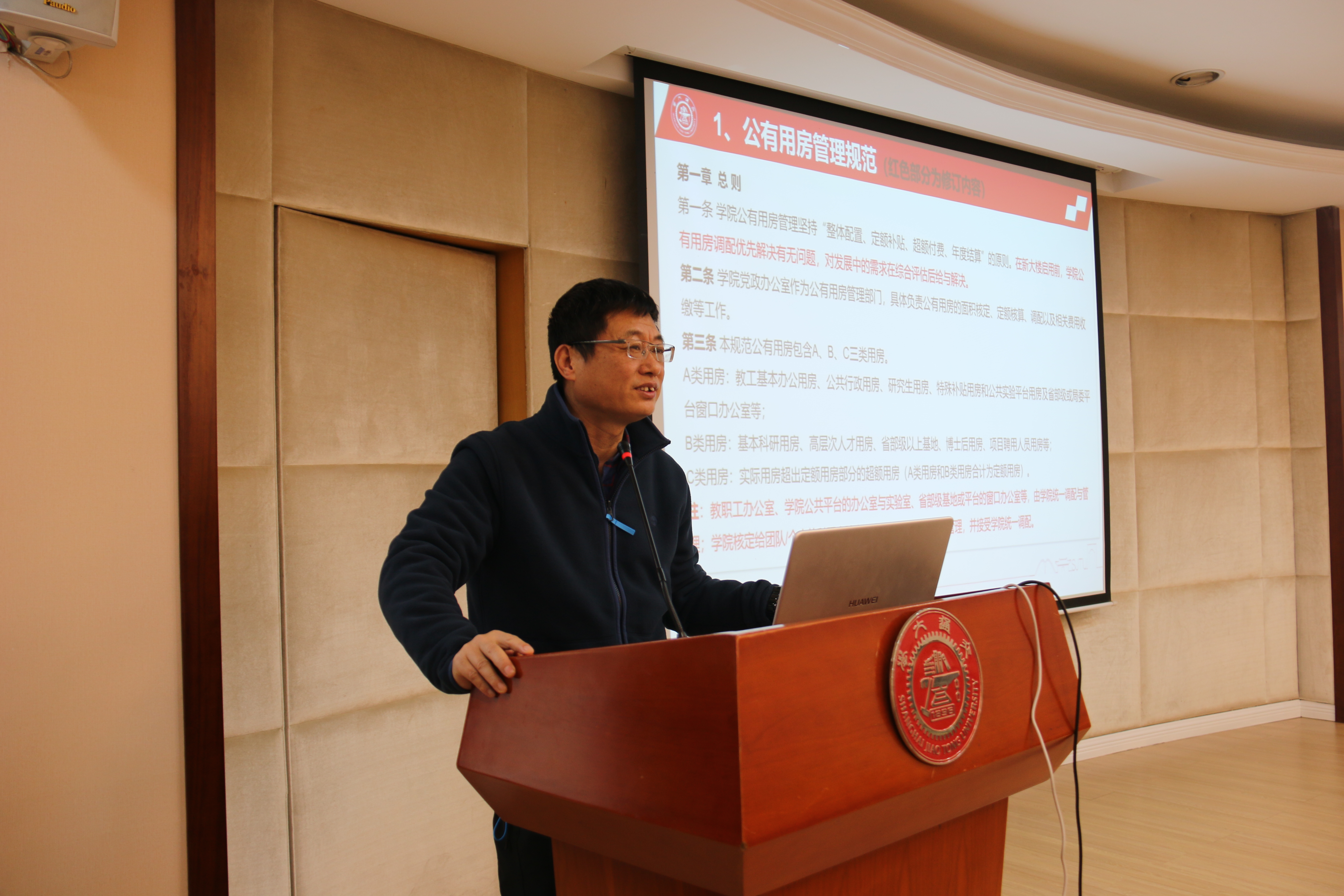 副院长许振明向与会人员介绍了 日本女优 公有用房管理规范、实验室安全管理奖惩机制及实验室大型仪器设备资源共享管理办法。