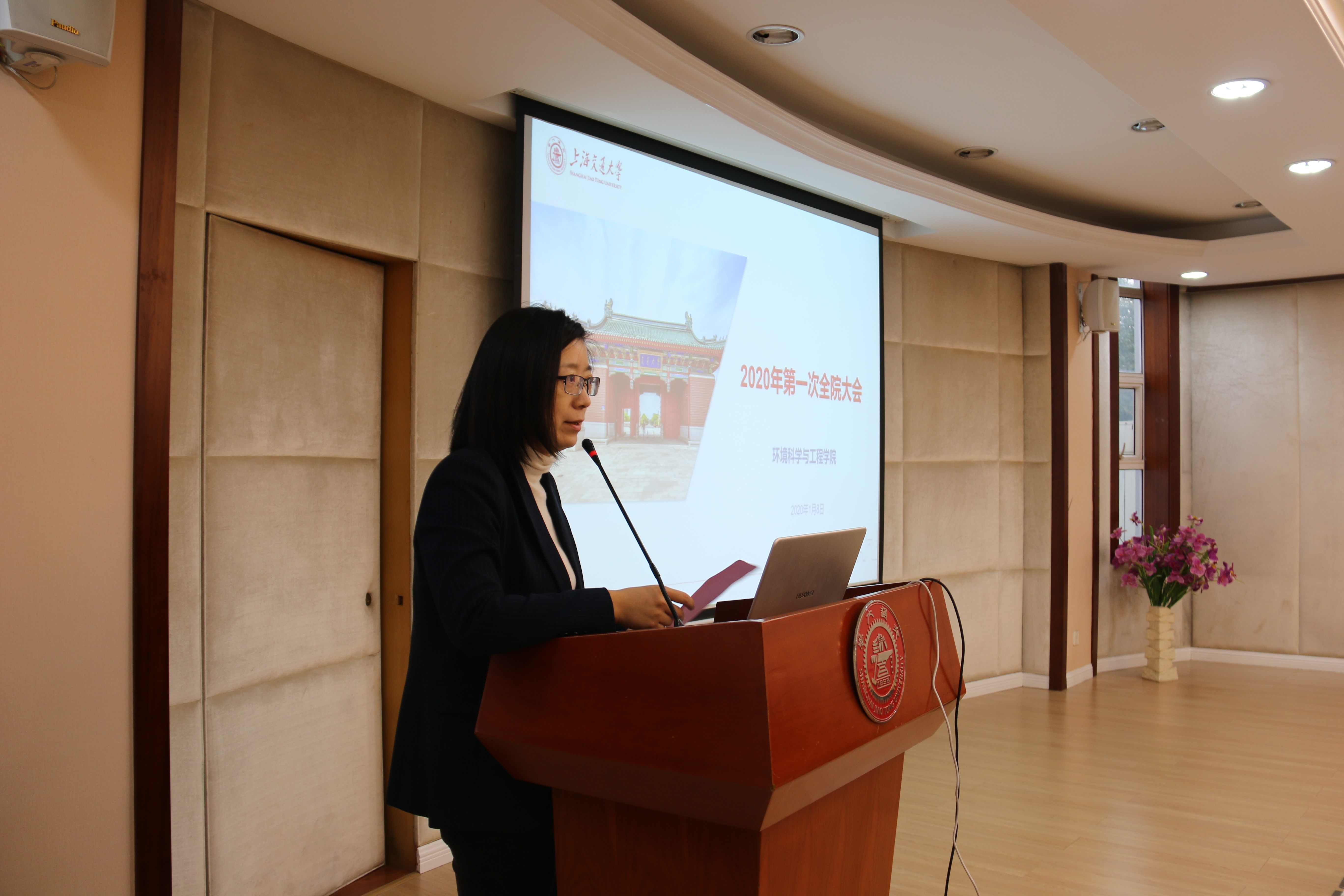 1月8日上午, 日本女优 2020年度第一次全院大会在学院报告厅召开,学院党政领导班子、全体教职工参会,会议由党委书记胡薇薇主持。