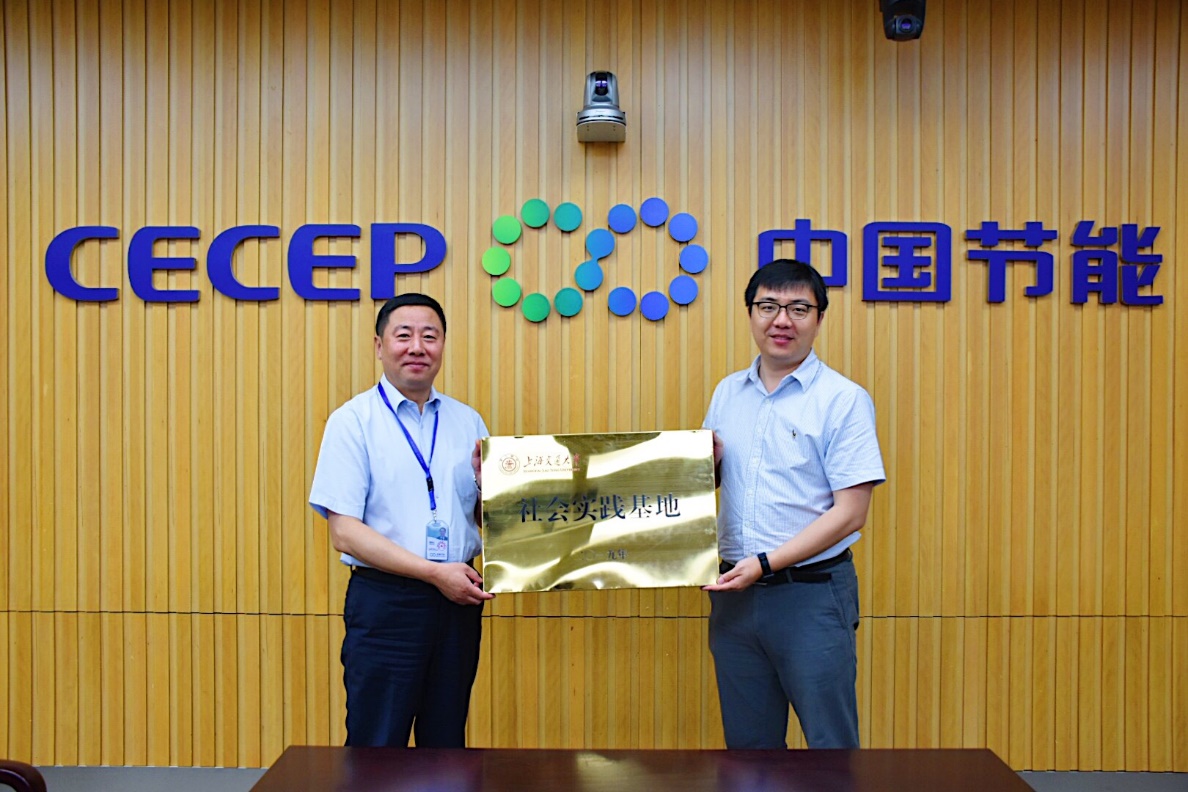 党委副书记陈哲为中国节能环保集团人力资源部部长杨耀武授社会实践基地牌