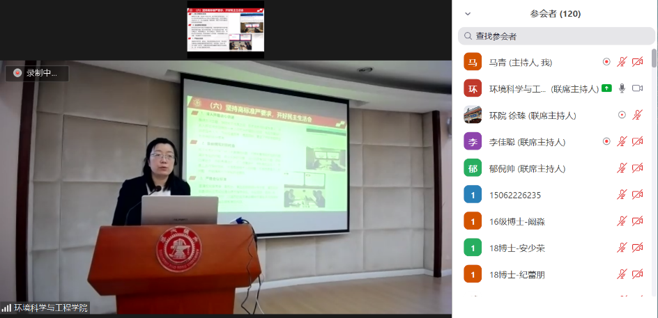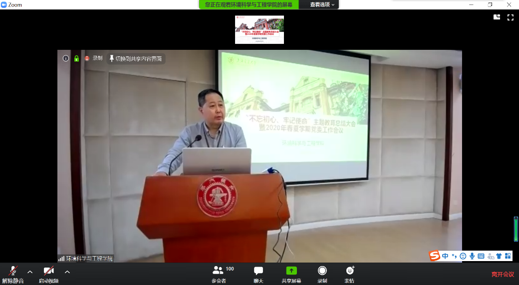 5月7日下午,日本女优 召开“不忘初心、牢记使命”主题教育总结大会。会议主会场在环境楼二楼报告厅和ZOOM线上会议室同步进行,学院党政领导班子、党委委员、全体师生党员等100余人参加了会议。会议由院长耿涌主持。