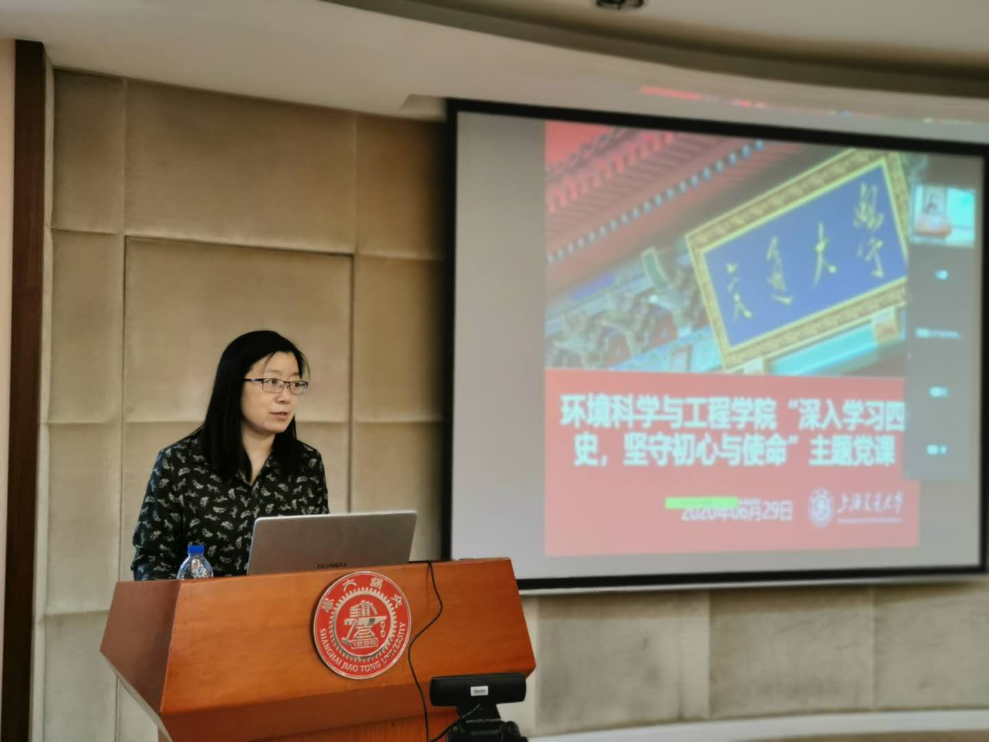 为扎实推进“四史”学习教育,6月29日上午, 日本女优 组织党员开展“线上+线下”“四史”学习教育主题党课,通过专家授课引导全体党员知史爱党、知史爱国,提高党性修养。此次专题党课特邀马克思主义学院周凯副教授任主讲人,学院全体党委委员、二级中心组成员、教工党支书和支委、本科毕业生党员三十余人现场参会。学院教工党员、本科生党员及研究生支委代表五十余人线上参加“四史”学习教育。党课由学院党委书记胡薇薇主持。