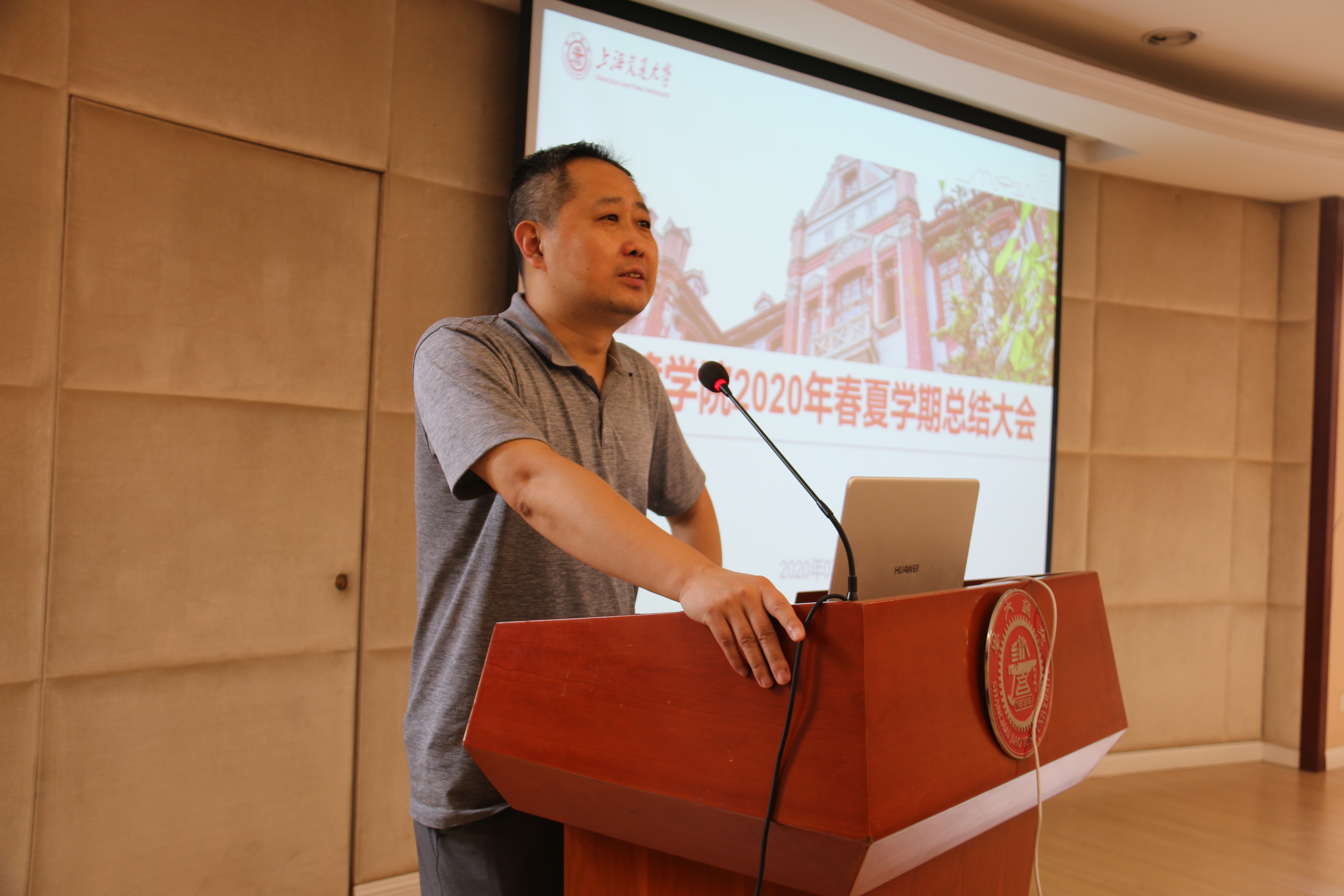 2020年春夏学期总结大会在学院报告厅召开,学院党政领导班子、全体教职工参会,会议由院长耿涌主持。