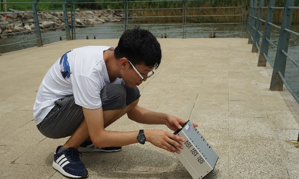 为助力当地生态文明建设,实践团队成员在何义亮教授的指导下,在太湖的3个位点对水体进行了取样。为保证数据的科学可靠性,每个位点取三份平行水样。所有样品均处于4℃下进行低温保存,带回学院实验室内进行分析检测。通过对水样的检测,在本次所取的三个位点中,太湖水体的总氮含量小于1 mg/L,总磷含量小于0.05mg/L,均达到地表水环境质量标准中的Ⅲ类水标准。同时,团队成员还在现场对当地空气中的颗粒物进行了监测。监测得到的PM2.5值小于35 μg/m3,PM10 值小于50 μg/m3,均达到了环境空气质量标准中的一级标准。