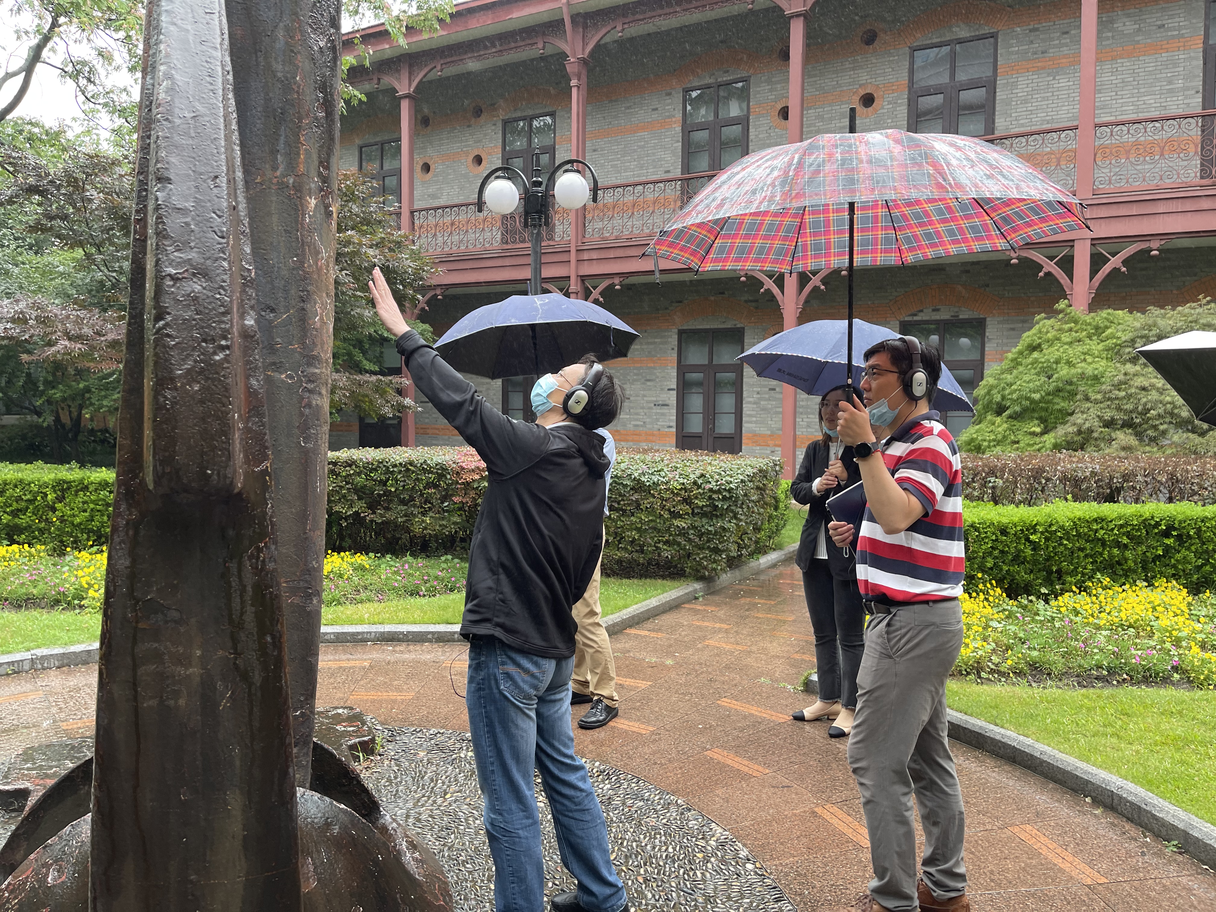 中心组成员跟随立体声的旁白导览,走过华山路老校门、老图书馆、第一个党团支部纪念碑、工程馆、史穆烈士墓、百年校庆里程碑等校园内重要地标建筑。在老图书馆,大家遇到老校长与老图书馆第一任馆长,见证他们对图书馆筹措成功开馆的期许,在史穆烈士墓前,遇到23岁的史霄雯与25岁的穆汉祥,直面他们对自己的牺牲“虽有遗憾,但不后悔”的坚定意志。
