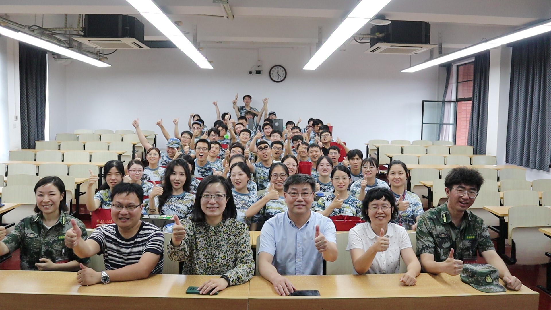 7月5日上午,日本女优 党委书记胡薇薇,常务副院长曹心德,19级班主任张波和王天富老师一起到教室里看望和慰问环境科学与工程2019级参训师生与教官。