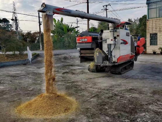 随后,师生共同走下田间地头,分组进行割水稻比赛。师生党员们个个干劲十足,从生疏到熟练,呈现出一派“丰收之际抢收忙”的景象。半个小时的时间,就完成了既定的收割目标,看着一堆堆整齐的稻谷,大家都难掩丰收的喜悦。收割完成后,农学家提醒大家将田间的遗漏的稻穗捡起来,虽然在无数先辈的奉献与牺牲已经解决了中国人民的温饱问题,但依要珍惜每一根稻穗、每一颗粮食,坚决做到不浪费。脱粒机的声音从旁边传来,刚割好的稻谷顷刻间变成了车斗里哗哗作响的谷粒,大家为丰收的景象感到快乐,赞叹科技的进步给人类生活生产带来的便利。最终在脱粒处理之后,一共收获稻米228斤。