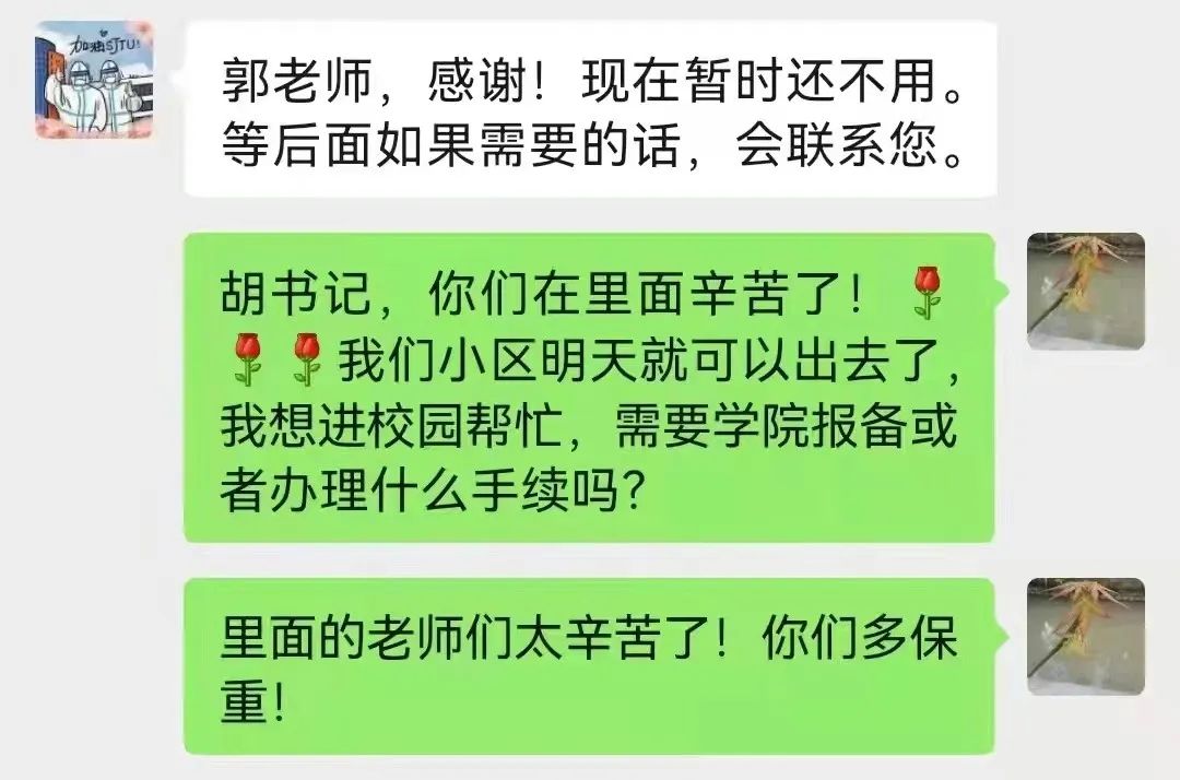 入党积极分子王天富和行政与实验室党支部党员郭卫民主动申请返校参与校内疫情防控工作