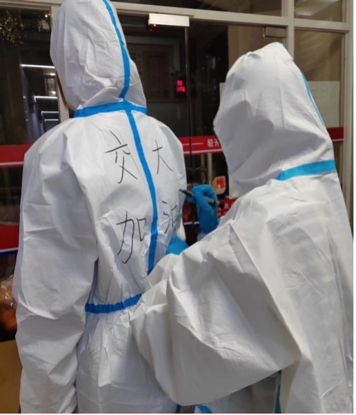 陈淑钰在楼栋中负责清运垃圾、配送物资、统计配餐需求的工作。她表示,每当看到逆行回校的老师和校友源源不断的捐赠,都感到“饮水思源,爱国荣校”的校训已深深烙印在每个交大人的心中。“作为一名党员,我们更应该亮出身份,贡献自己的一份力量。”