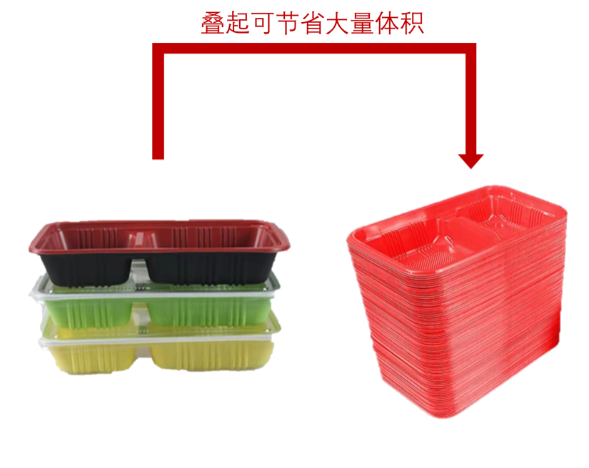 堆叠饭盒总体积=非堆叠饭盒总体积÷共叠数量(个/宿舍)×共叠抬高系数