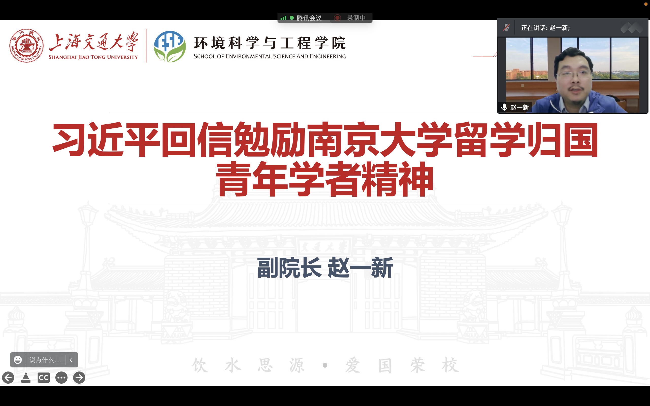 副院长赵一新带领中心组成员学习习近平总书记回信勉励南京大学留学归国青年学者精神。他表示,习近平总书记的亲切问候和真挚期许让同样作为一名留学归国青年学者的自己深受鼓舞和振奋。当代青年生逢其时,留学归国青年更要以老一辈科学家为榜样,弘扬留学报国的光荣传统,心系“国家事”、肩扛“国家责”,以报效国家、服务人民为自觉追求,充分发挥主动性和创造力,不断攀登科技前沿的高峰。同时,作为一名教育工作者,必须坚持立德树人,坚定文化自信,坚守价值底线,用实际行动教育和引导学生树立报国之志,传承奋斗薪火,为全面建设社会主义现代化国家、实现中华民族伟大复兴的中国梦积极贡献智慧和力量。